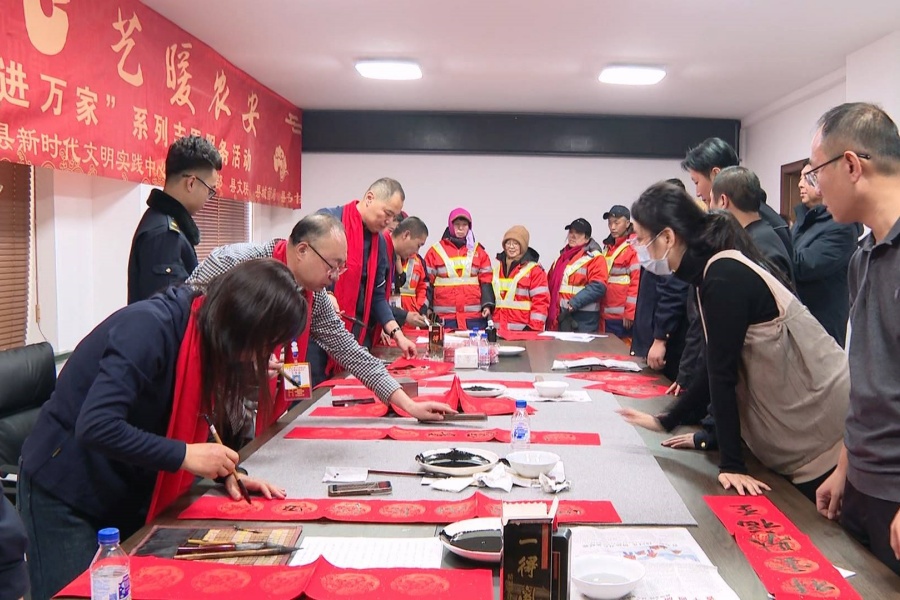 新春将至,年味渐浓。近日,由农安县新时代文明实践中心、县委宣传部、县文联联合开展的文艺志愿服务活动温情启幕,县书法家协会志愿者们走进县城管局,挥毫泼墨写春联、送福字,为坚守岗位的城管局干部职工与一线环卫工人送上最真挚的马年新春祝福。