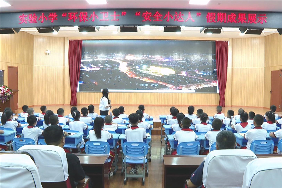 最后,陈娅一行共同参加了实验小学“环保小卫士”“安全小达人”假期成果展。