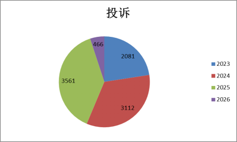 • 2025年:投诉3561件(同比+14.4%),举报2806件(同比+17.8%)